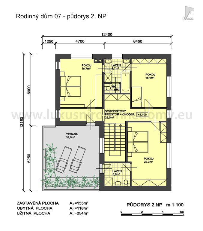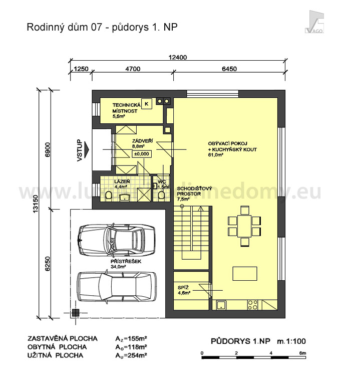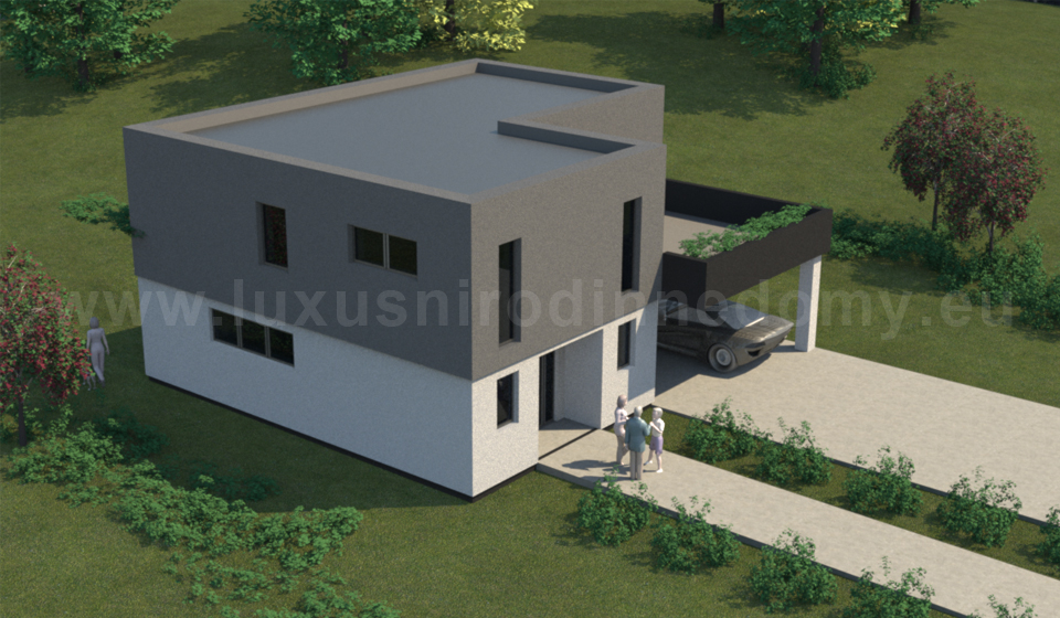 - Garážové stání pro 2 vozy pod terasou.V tomto prostoru možno provést namísto stání bazén.