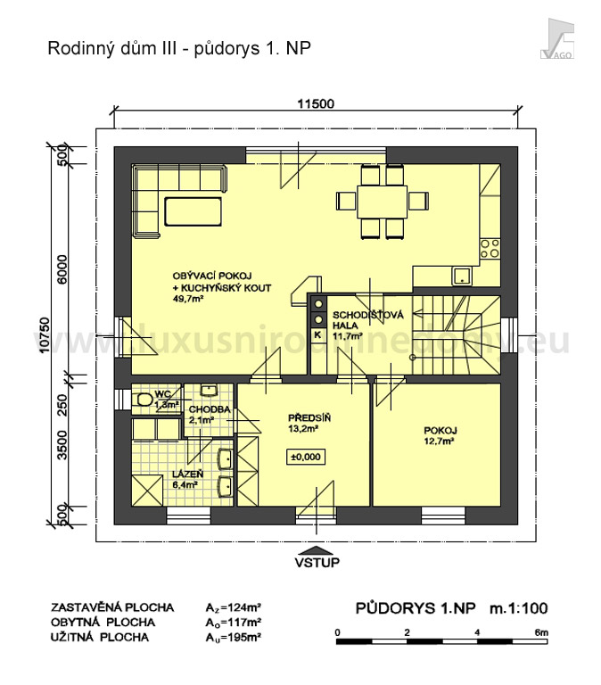 - V 1. NP obytná část s výstupem do zahrady, zázemí.