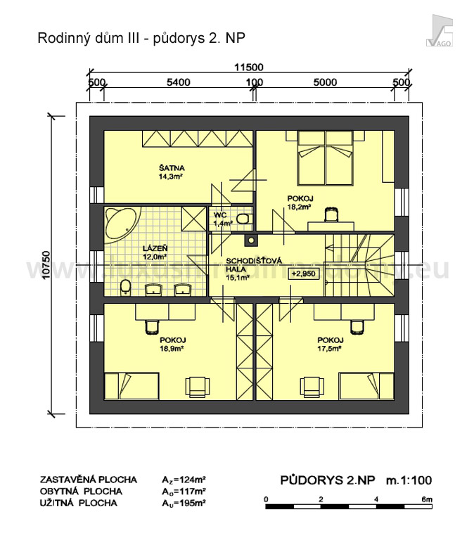 - Dům čtvercového půdorysu s velikou využitelností dispozičního uspořádání. Pohodlné schodiště.